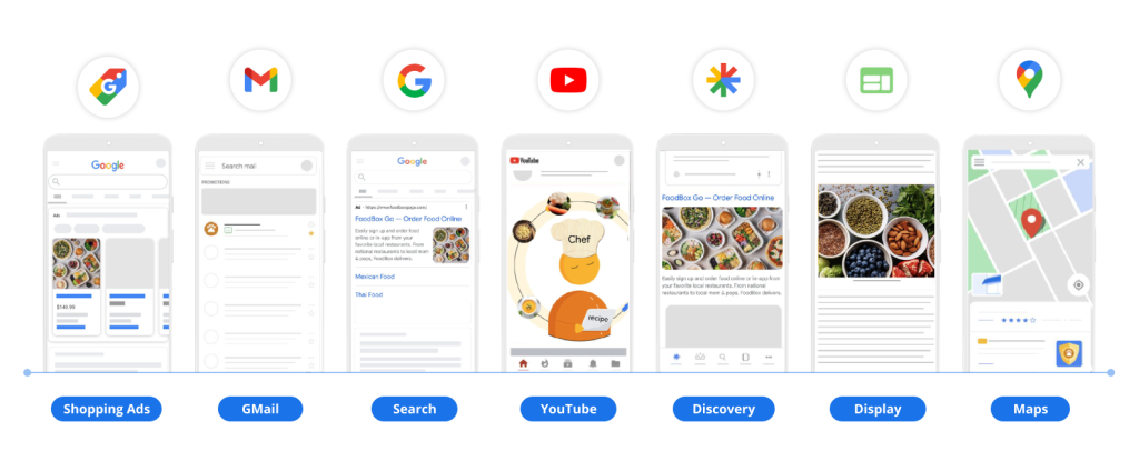 Shopping Ads dostupan je kroz dva tipa kampanja: Standard Shopping kampanje i Performance Max kampanje. Iako obe koriste isti product feed, Performance Max omogućava širi doseg kroz više Google kanala, među kojima su Search, YouTube, Display, Gmail, Maps i drugi. Uz to, oslanja se na automatizaciju i AI, koristeći signale poput podataka o proizvodima, ponašanja korisnika i sadržaja landing stranice kako bi unapredio performanse i došao do nove publike.